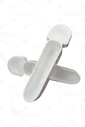 Semillero alargado en plástico Blanco opaco, ideal para jaulas de concurso y jaulas de canarios.