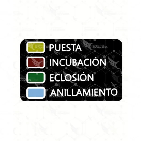 La tabla identificadora se puede colocar en la pared, retirando el precinto adhesivo que lleva, quedando visible a la vista del criador, para tener un control cuando se use los marcadores de colores.